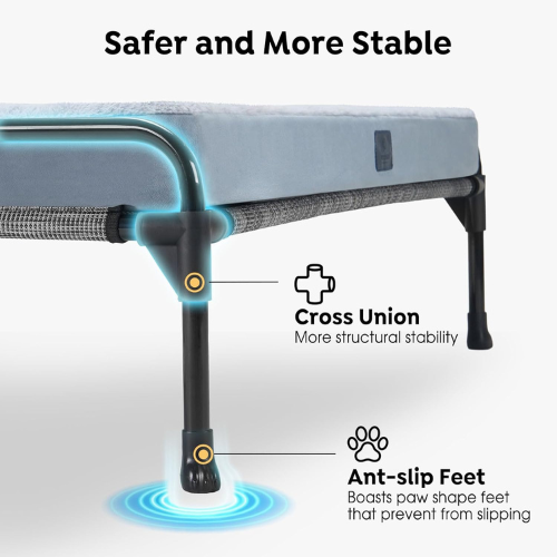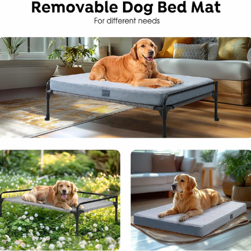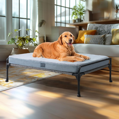 La cama ortopédica elevada con colchón ofrece el máximo confort y soporte para tu perro. Al estar separada del suelo evita la humedad, el polvo y los cambios de temperatura, mientras que el colchón ortopédico protege las articulaciones y la columna. Es ideal para peludos grandes, adultos o con sensibilidad articular, ya que les brinda descanso profundo, higiene y comodidad premium.